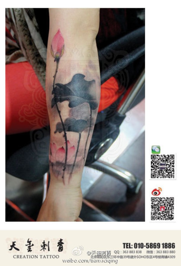 手臂清雅唯美的水墨写意莲花纹身图案_臂部纹身图案大全_纹身图吧
