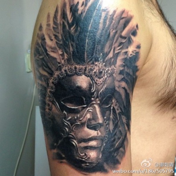 手臂潮流经典的一款黑灰威尼斯面具纹身图案_臂部纹身图案大全_纹身图吧