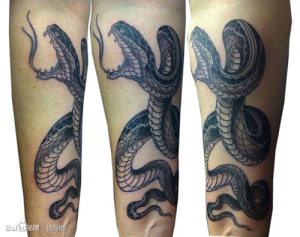 手臂时尚经典的一款黑灰蛇纹身图案_臂部纹身图案大全_纹身图吧