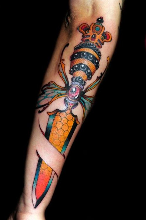 分享一款小臂时尚的匕首纹身图案_臂部纹身图案大全_纹身图吧