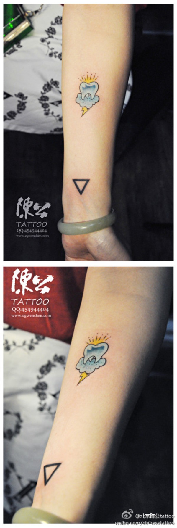 手臂时尚小巧的一款牙齿与乌云纹身图案_臂部纹身图案大全_纹身图吧