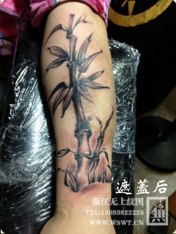 手臂潮流经典的黑灰竹子纹身图案_臂部纹身图案大全_纹身图吧