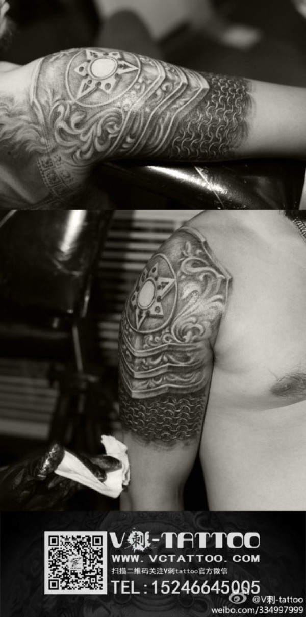 男生手臂时尚很酷的盔甲纹身图案_臂部纹身图案大全_纹身图吧