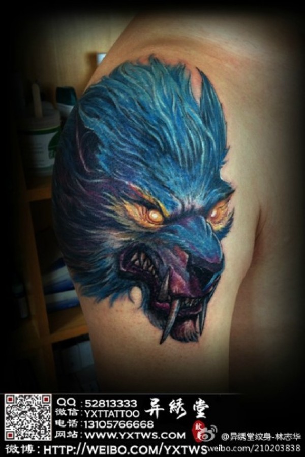 男人手臂很酷霸气的狼头纹身图案_臂部纹身图案大全_纹身图吧