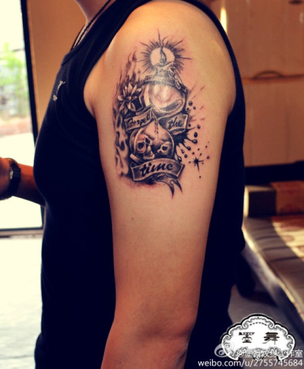 男生手臂时尚很帅的沙漏纹身图案_臂部纹身图案大全_纹身图吧