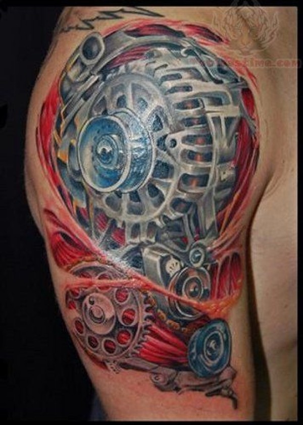 男人一款时尚的机械大臂纹身图案_臂部纹身图案大全_纹身图吧