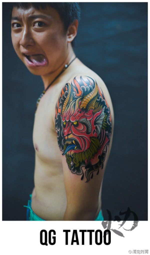 男生手臂时尚很帅的恶魔撒旦纹身图案_臂部纹身图案大全_纹身图吧
