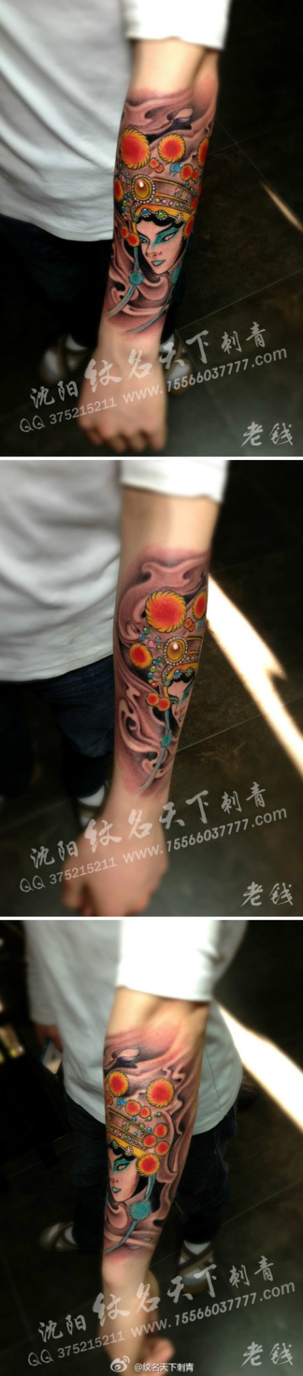 手臂唯美漂亮的一款美女花旦纹身图案_臂部纹身图案大全_纹身图吧
