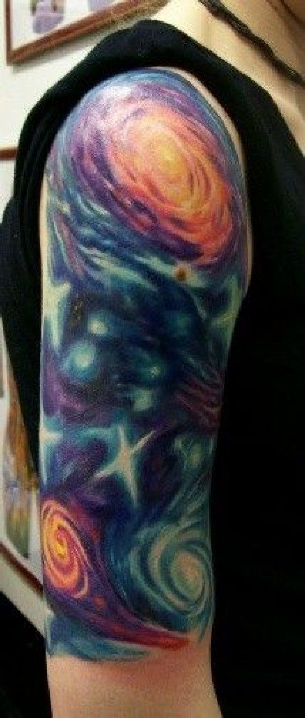 推荐一款时尚好看的大臂星空纹身图案_臂部纹身图案大全_纹身图吧