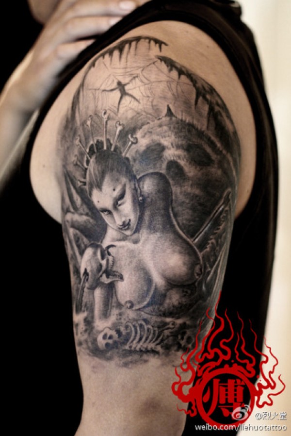 男人手臂一款超酷的蜘蛛精纹身图案_臂部纹身图案大全_纹身图吧