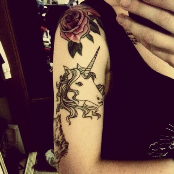 分享一款个性的大臂独角兽纹身图案_臂部纹身图案大全_纹身图吧