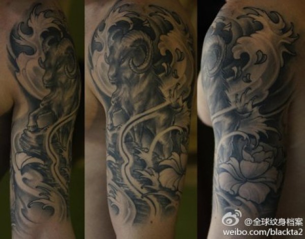 手臂一款黑灰山羊纹身图案_臂部纹身图案大全_纹身图吧