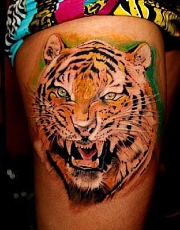 一款霸气十足的大臂老虎纹身图案_臂部纹身图案大全_纹身图吧
