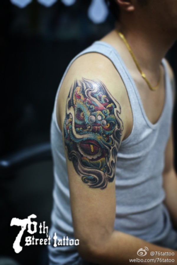 男生手臂精美的舞狮子头纹身图案_臂部纹身图案大全_纹身图吧