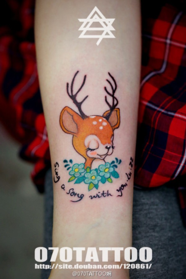 手臂可爱很萌的小鹿纹身图案_臂部纹身图案大全_纹身图吧