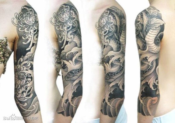 手臂时尚唯美的黑灰蛇纹身图案_臂部纹身图案大全_纹身图吧