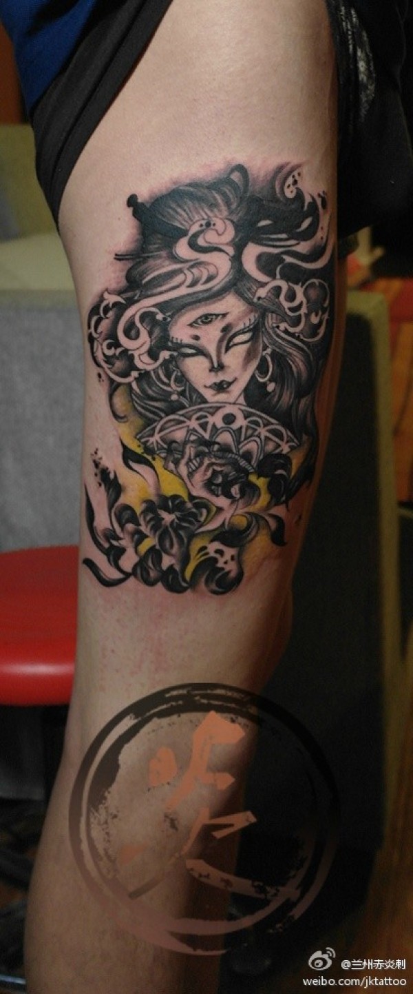 手臂漂亮时尚的一款黑灰美女纹身图案_臂部纹身图案大全_纹身图吧