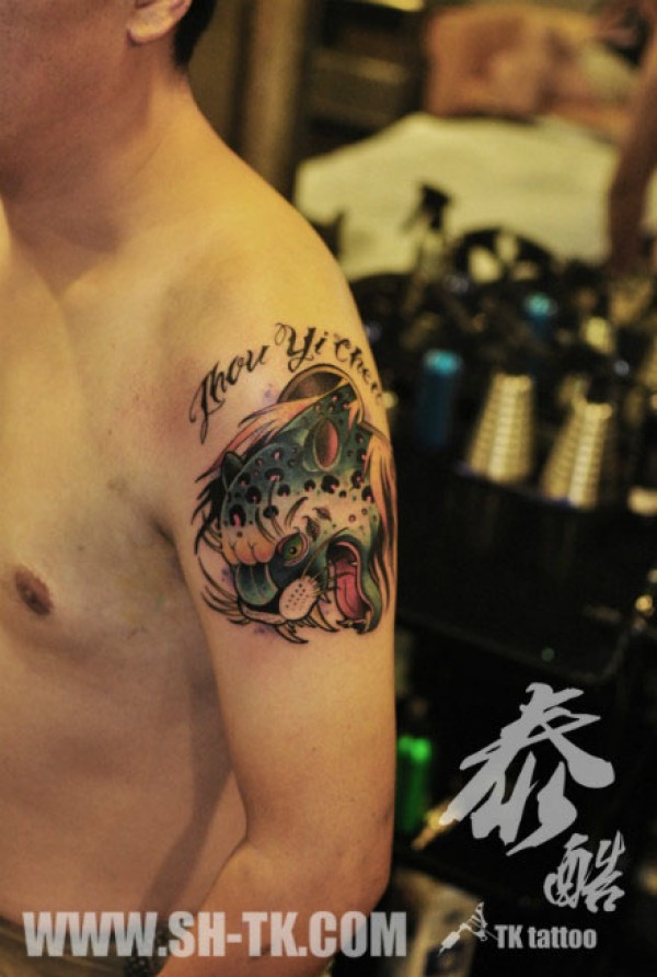 男生手臂经典很酷的豹头纹身图案_臂部纹身图案大全_纹身图吧
