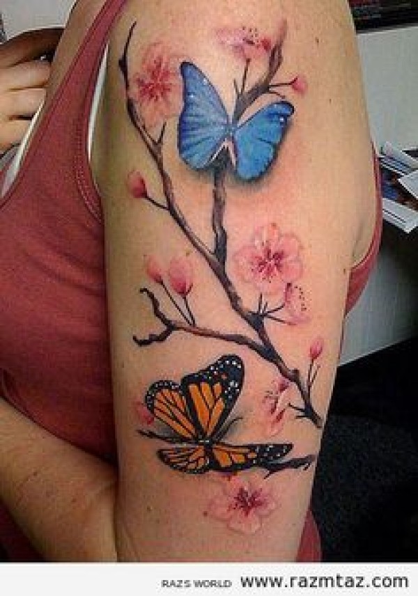 分享一款大臂蝶恋花纹身图案_臂部纹身图案大全_纹身图吧