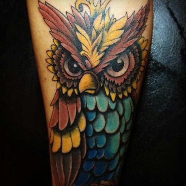 推荐一款小臂猫头鹰纹身图案_臂部纹身图案大全_纹身图吧