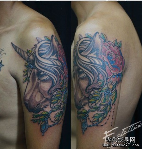 手臂经典的一款胖胖的独角兽纹身图案_臂部纹身图案大全_纹身图吧