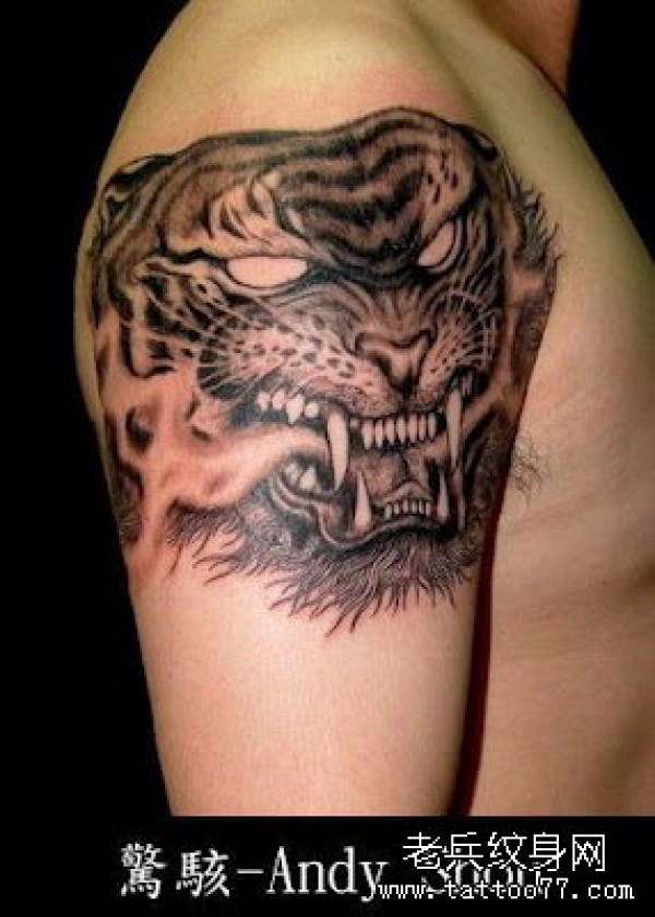 分享一款霸气的大臂老虎纹身图案_臂部纹身图案大全_纹身图吧