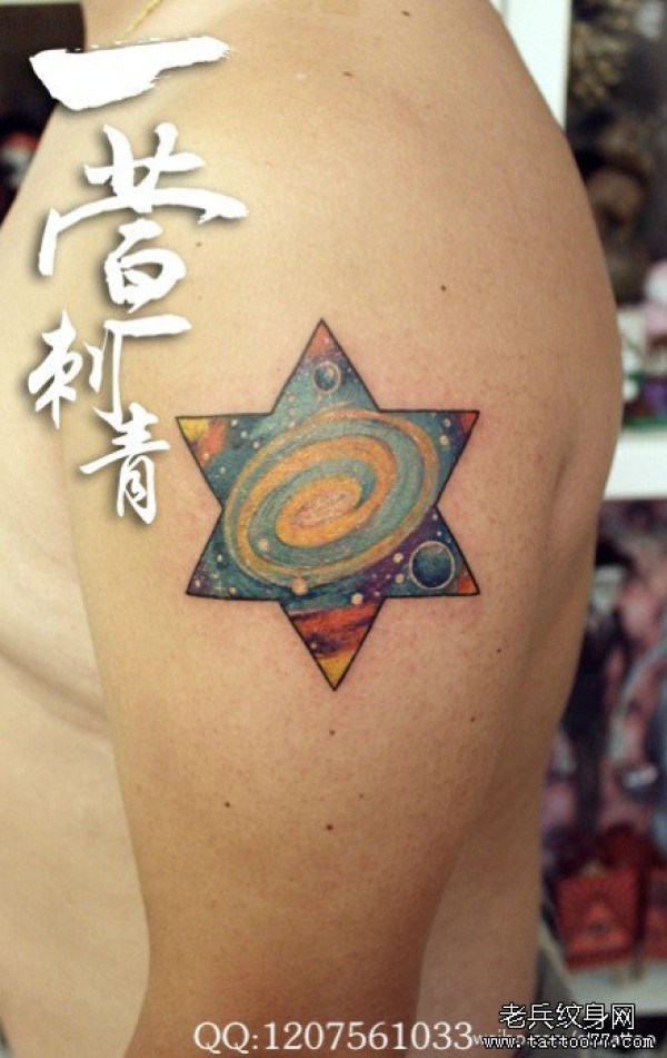 手臂精美潮流的星空六芒星纹身图案_臂部纹身图案大全_纹身图吧