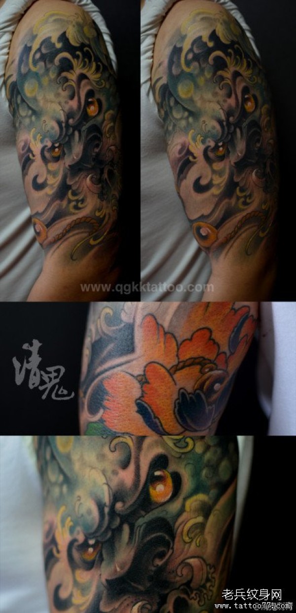 男人手臂帅气超酷的唐狮子纹身图案_臂部纹身图案大全_纹身图吧