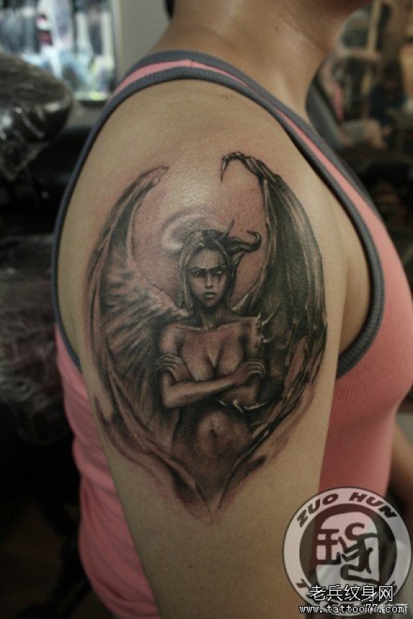 男人手臂超帅的一款美女版恶魔纹身图案_臂部纹身图案大全_纹身图吧