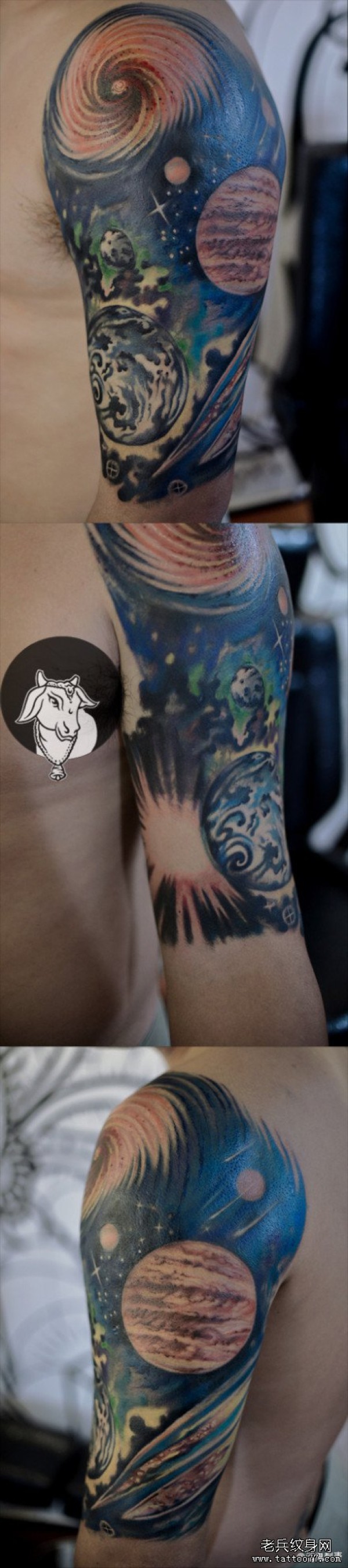 男人手臂超酷精美的彩色星空纹身图案_臂部纹身图案大全_纹身图吧