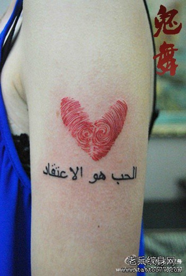 手臂一款唯美经典的指纹爱心纹身图案_臂部纹身图案大全_纹身图吧