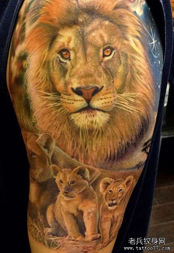 推荐一款霸气的大臂狮子纹身图案_臂部纹身图案大全_纹身图吧