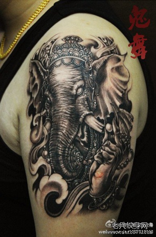 男人手臂经典超酷的黑灰象神纹身图案_臂部纹身图案大全_纹身图吧