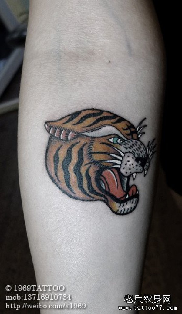 手臂潮流小巧的虎头纹身图案_臂部纹身图案大全_纹身图吧