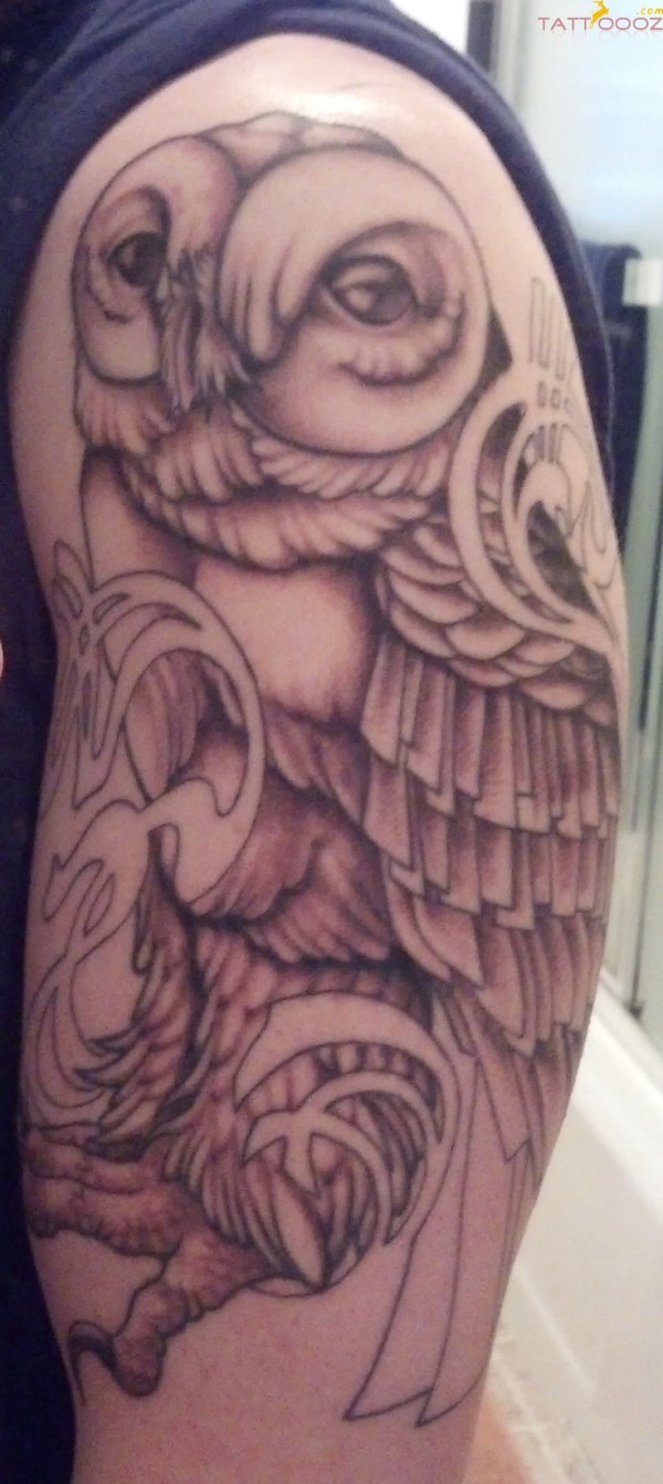 推荐一款黑灰大臂猫头鹰纹身图案_臂部纹身图案大全_纹身图吧