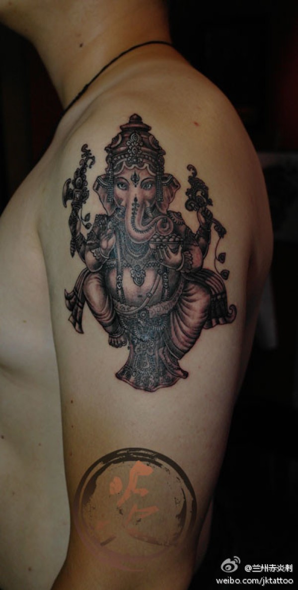 男人手臂一款经典潮流的象神纹身图案_臂部纹身图案大全_纹身图吧