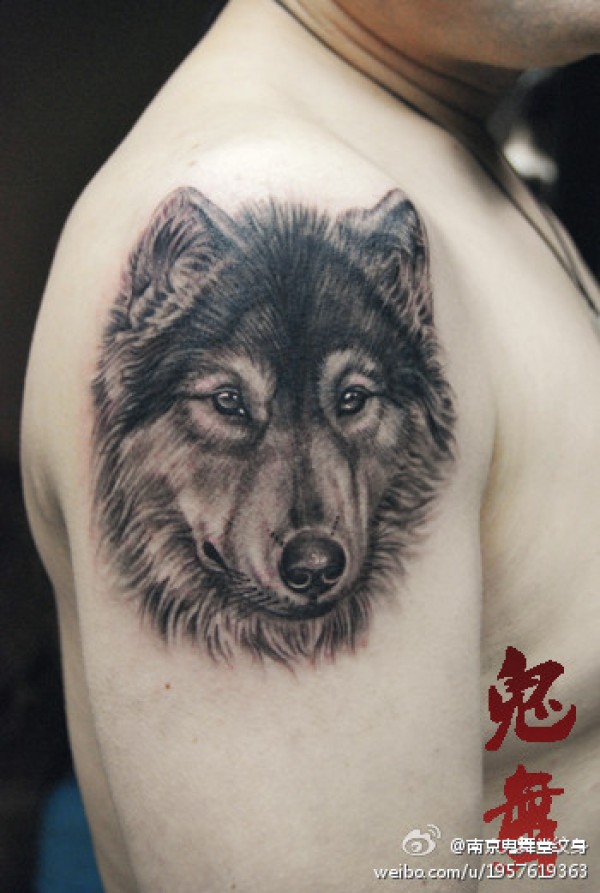 男人手臂潮流时尚的黑灰狼头纹身图案_臂部纹身图案大全_纹身图吧