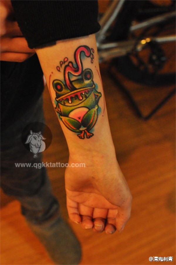 手臂经典潮流的青蛙纹身图案_臂部纹身图案大全_纹身图吧