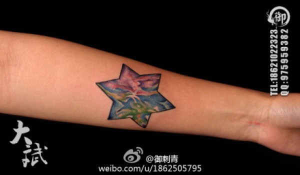手臂漂亮潮流的彩色星空六芒星纹身图案_臂部纹身图案大全_纹身图吧