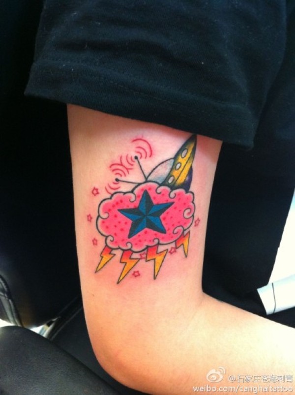 手臂潮流经典的小飞船纹身图案_臂部纹身图案大全_纹身图吧