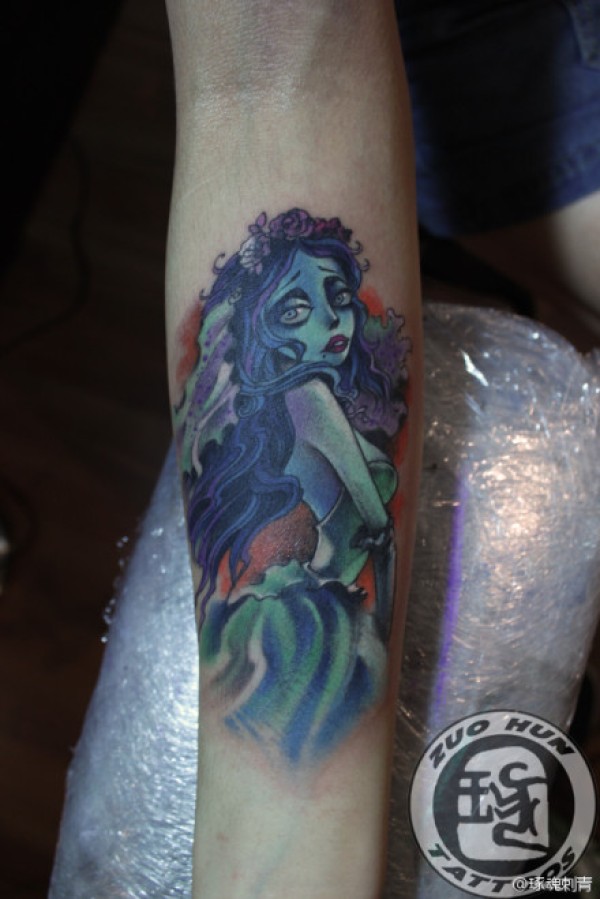 手臂经典漂亮的僵尸新娘纹身图案_臂部纹身图案大全_纹身图吧