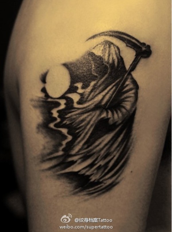 男生喜欢的手臂经典的黑灰死神纹身图案_臂部纹身图案大全_纹身图吧