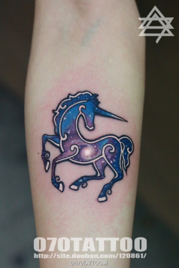 手臂漂亮潮流的星空独角兽纹身图案_臂部纹身图案大全_纹身图吧