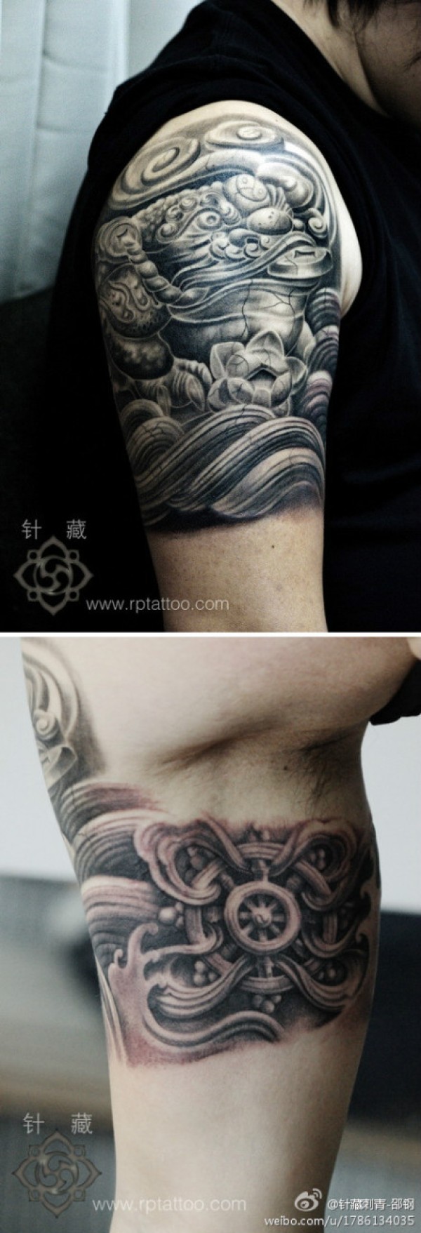 手臂经典超帅的石雕招财金蝉纹身图案_臂部纹身图案大全_纹身图吧