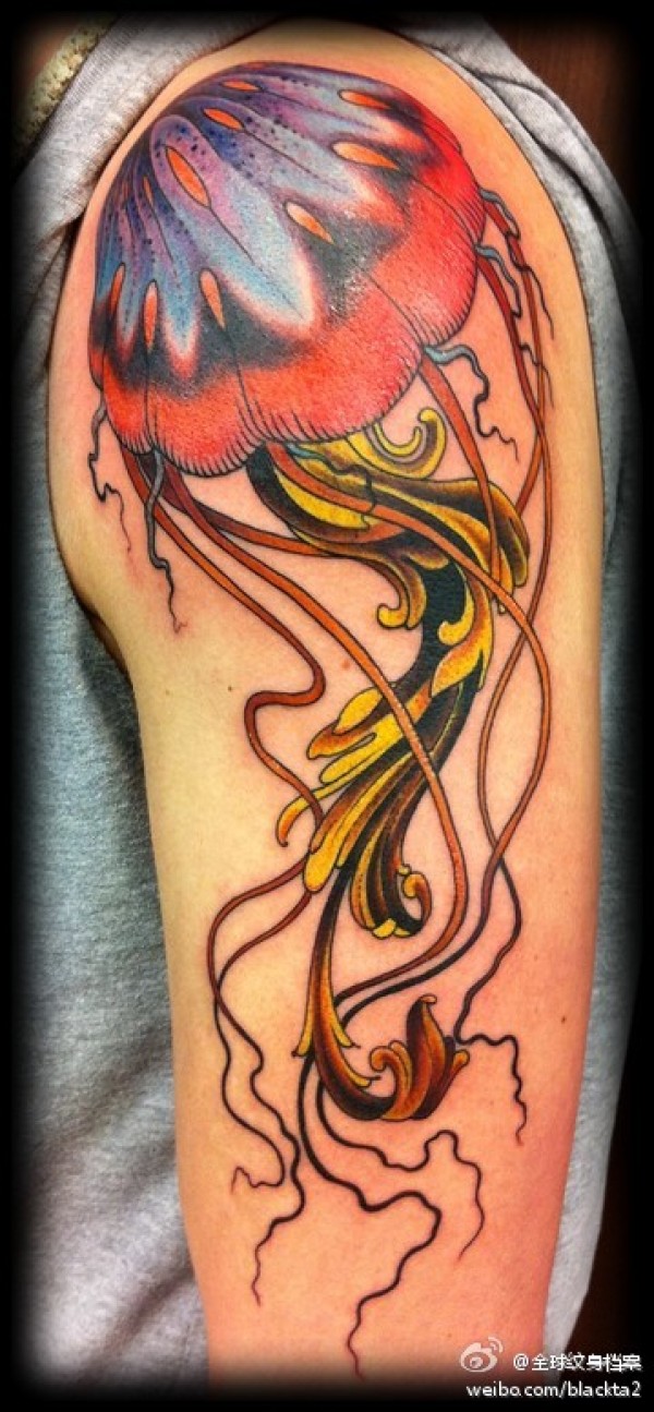 手臂一款潮流经典的水母纹身图案_臂部纹身图案大全_纹身图吧