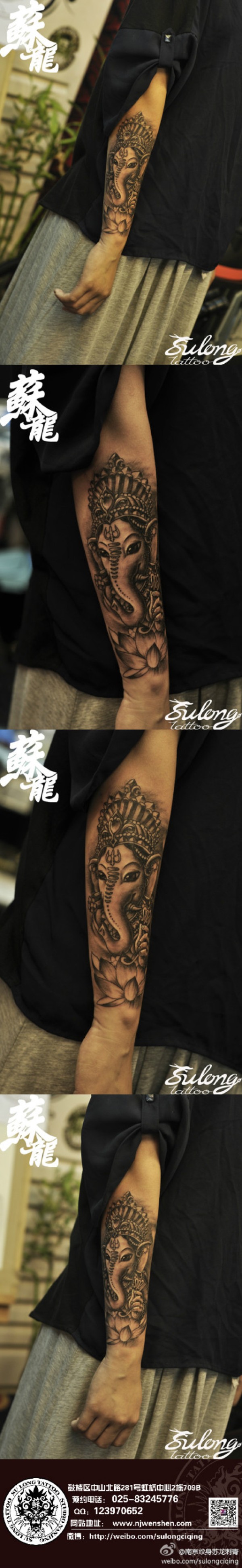 美女手臂唯美的黑灰象神纹身图案_臂部纹身图案大全_纹身图吧