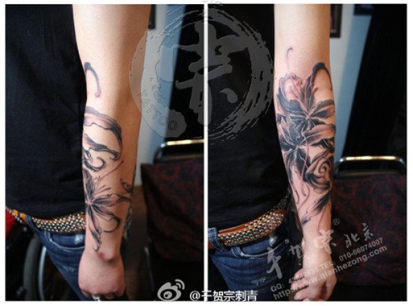 手臂潮流唯美的黑灰彼岸花纹身图案_臂部纹身图案大全_纹身图吧