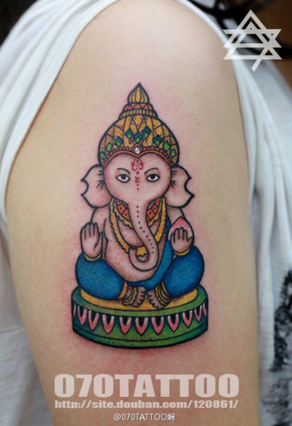 手臂一款呆呆的象神纹身图案_臂部纹身图案大全_纹身图吧