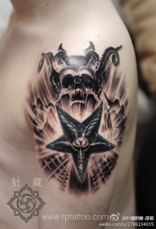 手臂超帅的恶魔撒旦纹身图案_臂部纹身图案大全_纹身图吧