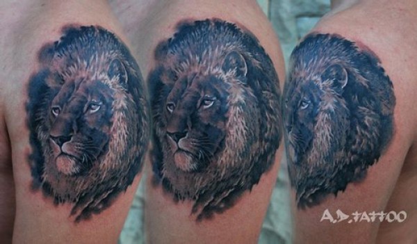 男人手臂经典帅气的狮头纹身图案_臂部纹身图案大全_纹身图吧